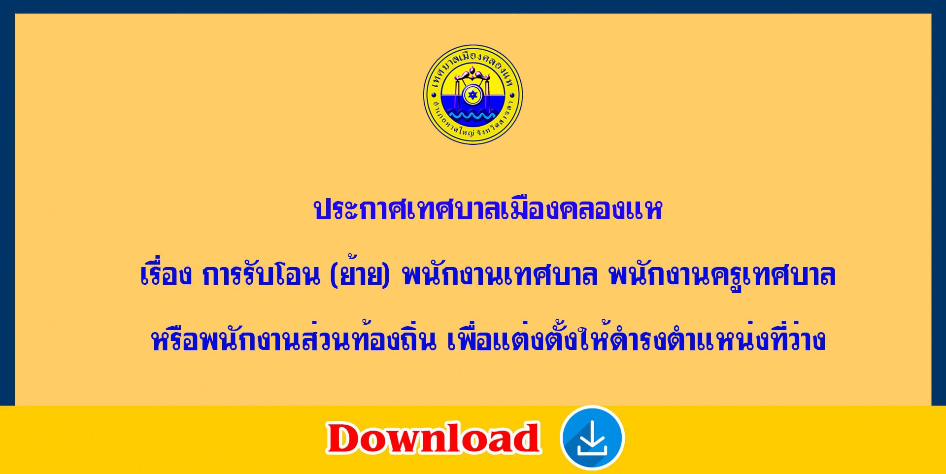 การรับโอน (ย้าย) พนักงานเทศบาล พนักงานครู เทศบาล หรือ พนักงานส่วนท้องถิ่นอื่น