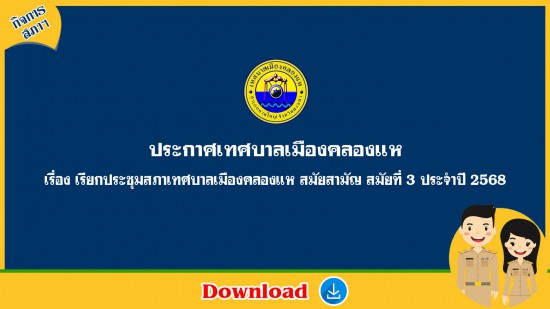 ประกาศสภาเทศบาลเมืองคลองแห เรื่อง เรียกประชุมสภาเทศบาลเมืองคลองแห สมัยสามัญ สมัยที่ ๓ ประจำปี ๒๕๖๘