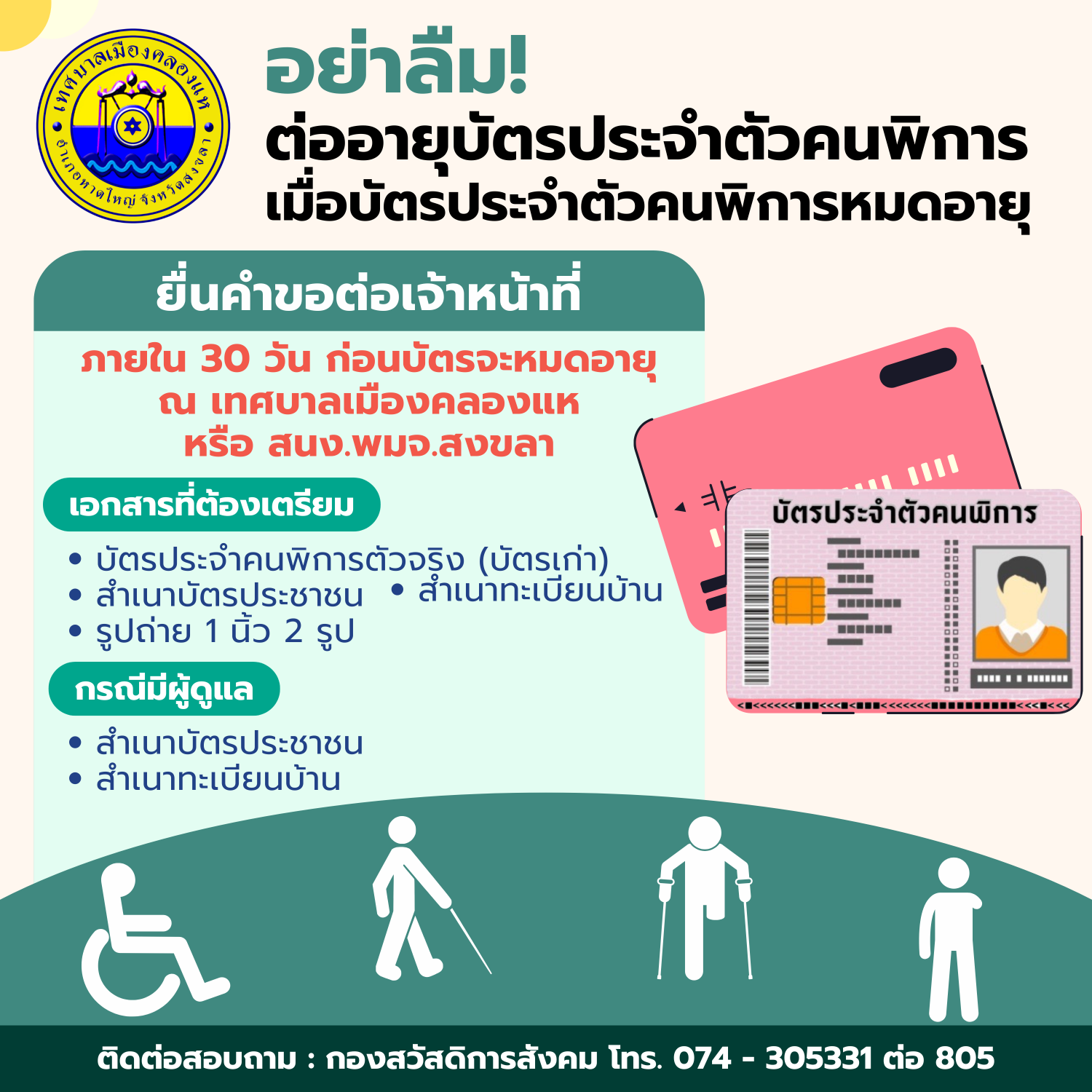 ณ เทศบาลเมืองคลองแห หรือ สนง.พมจ.สงขลา