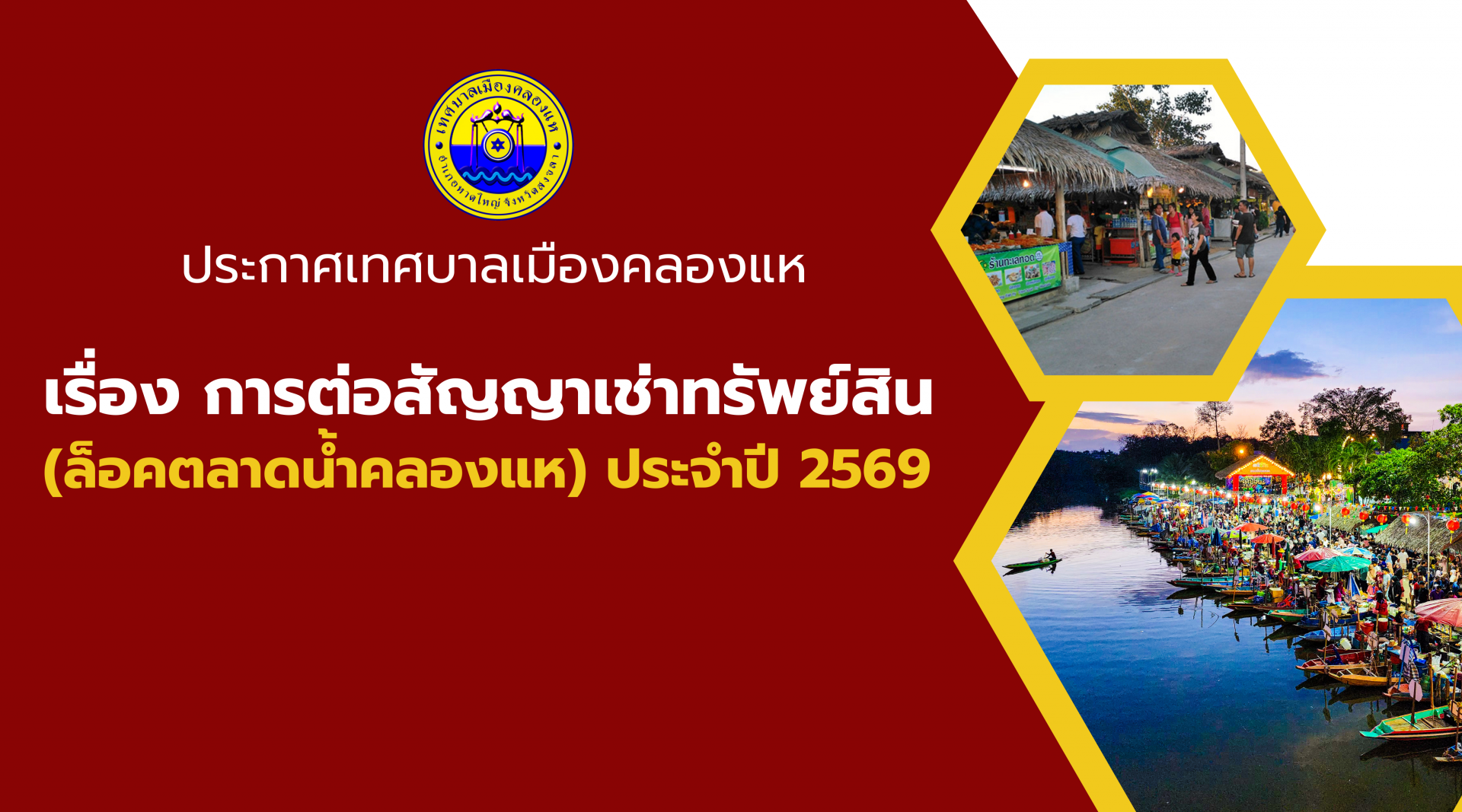 การต่อสัญญาเช่าทรัพย์สิน (ล็อคตลาดน้ำคลองแห) ประจำปี 2569