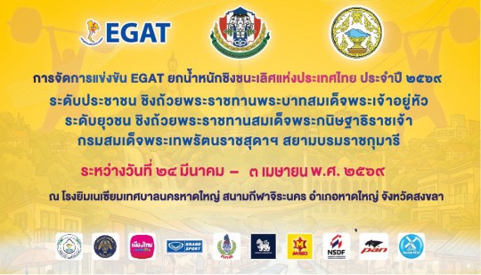 ร่วมชมการแข่งขันยกน้ำหนักระดับประเทศ "EGAT ยกน้ำหนักชิงชนะเลิศแห่งประเทศไทย 2569" ?️♂️?