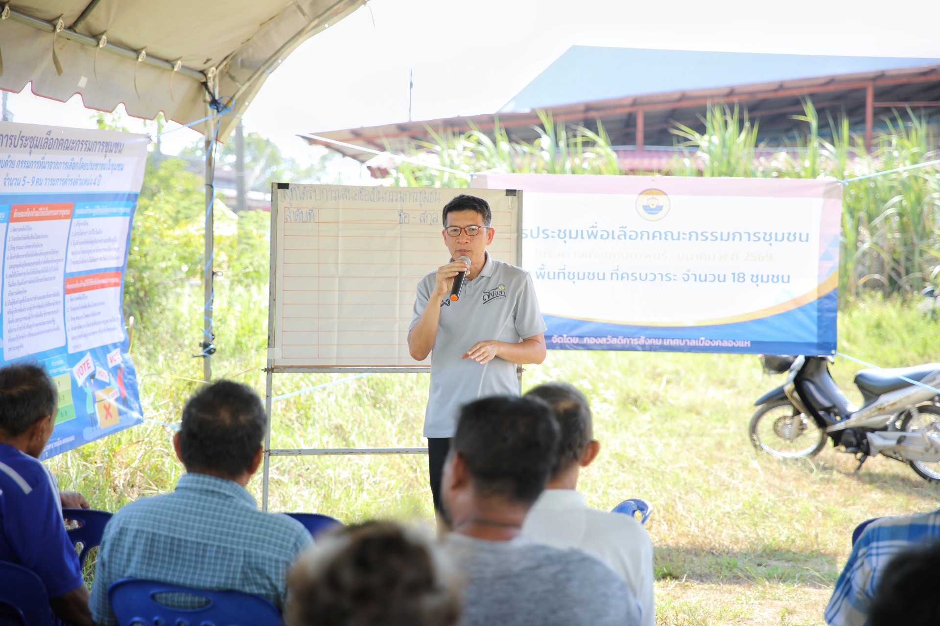 วันที่ 27 มีนาคม 2569 นายอดิศักดิ์ ศรีมณี นายกเทศมนตรีเมืองคลองแห มอบหมาย นายธีรพัฐ ด้ามทอง เลขานุการนายกเทศมนตรี สมาชิกสภาเทศบาลฯ และพนักงานเจ้าหน้าที่กองสวัสดิการสังคม ลงพื้นที่พบปะพี่น้องประชาชนที่เข้าร่วมประชุมประชาคม เพื่อดำเนินการคัดเลือกคณะกรรมการชุมชนอนุสรณ์อาจารย์ทอง โดยการประชุมได้คัดเลือกคณะกรรมการชุมชน จำนวน 7 ท่าน เป็นไปด้วยความเรียบร้อย และได้รับความร่วมมือจากประชาชนในพื้นที่เป็นอย่างดี